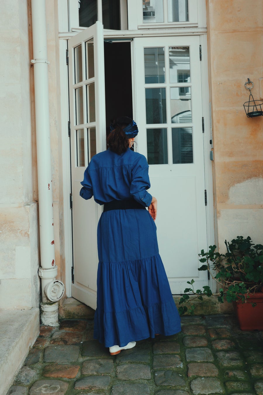 アパルトマンで自由気ままに過ごすことで、暮らすように過ごす時間を満喫。ヴィヴィッドなブルーのセットアップはデニム感覚で気負わず着こなせるアイテム。カフェからピクニックまで幅広いシーンで活躍します。