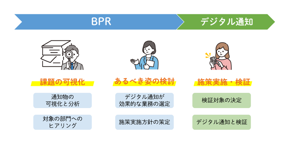(各種通知物の統廃合や形態の改善、通知物の標準化に向けた取り組みなど)