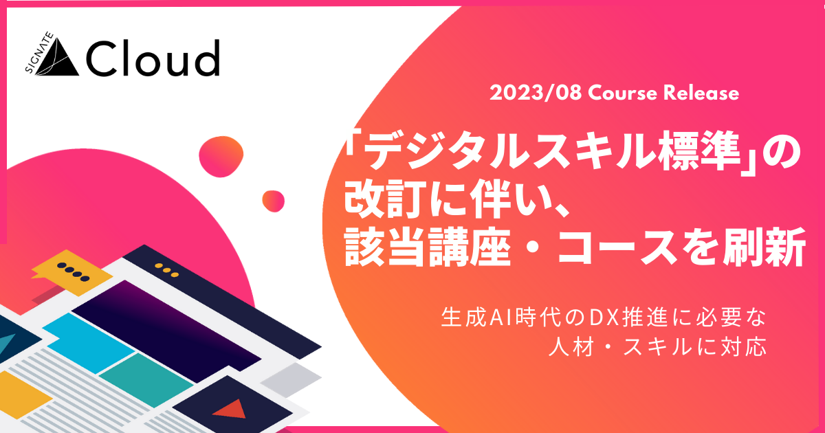 経済産業省・情報処理推進機構(IPA)による「デジタルスキル標準」の改訂に伴い、『SIGNATE Cloud』の該当講座・コースを刷新!
