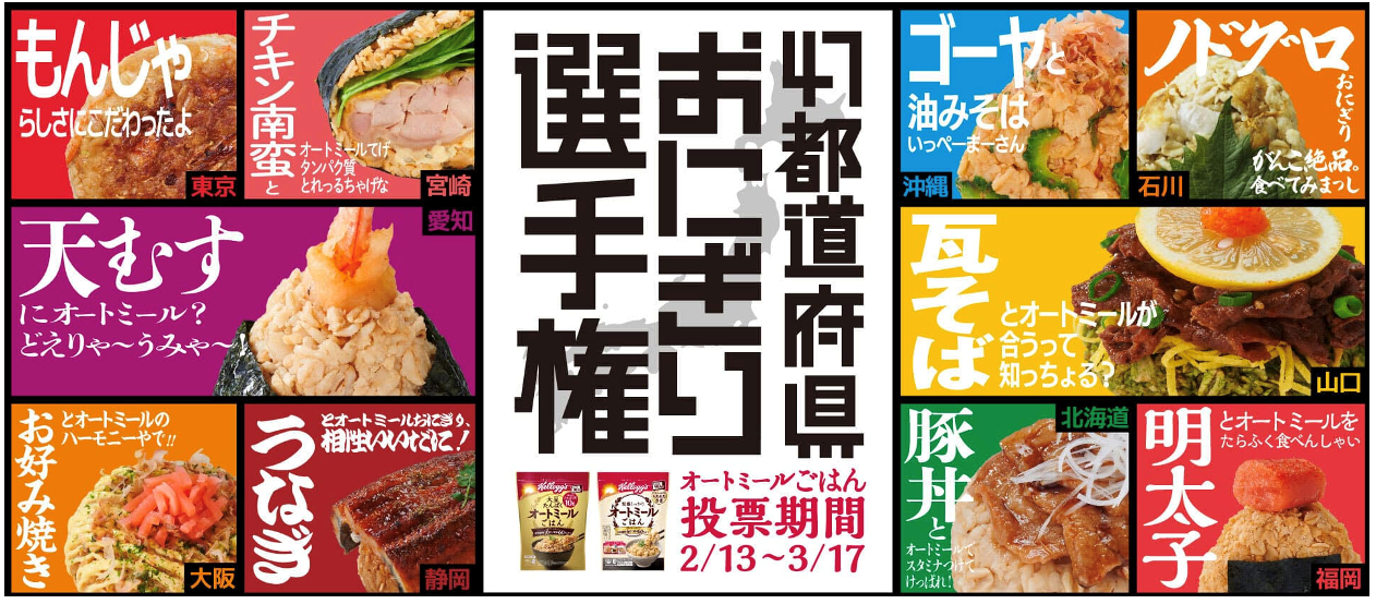 発売記念「ケロッグ オートミールごはん 47都道府県!おにぎり選手権」もスタート!あなたの”推しおにぎり”を投票すると抽選で100名様に豪華セットをプレゼント