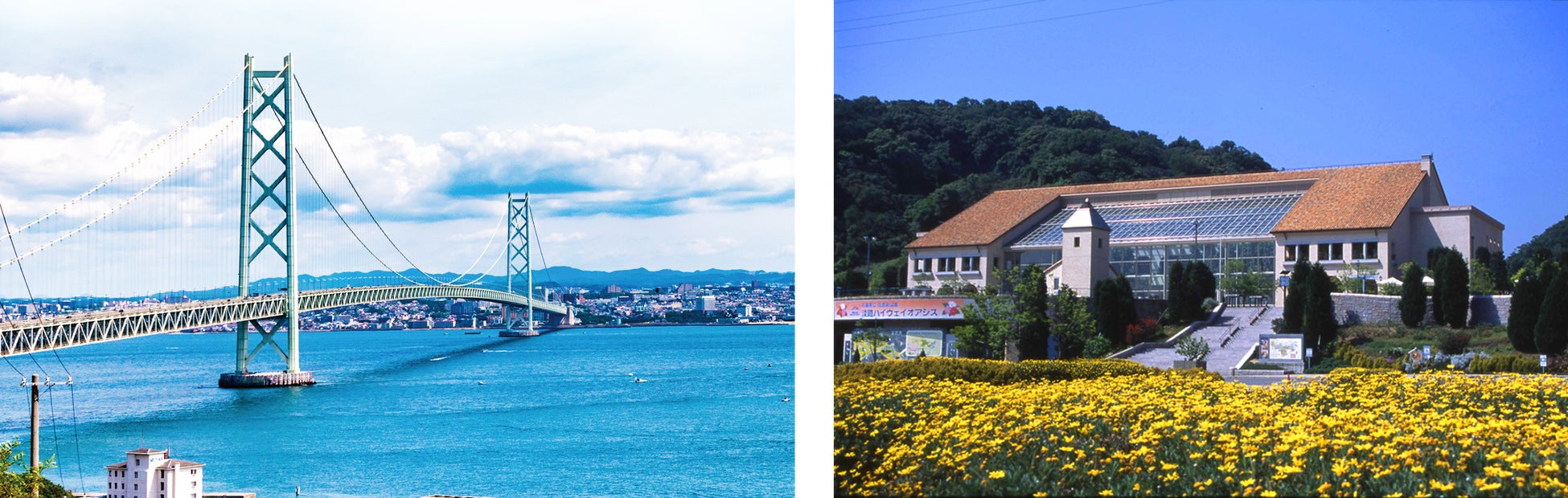 兵庫県立淡路島公園内に位置し、島内の玄関口となる「淡路ハイウェイオアシス」。明石海峡を眺めながら、地元ならではの旬の食材を存分に味わえるレストランや、淡路島の特産品などショッピングが楽しめる淡路物産館を併設する、島の魅力ぎゅっと詰め込んだ施設です。休憩だけでなく、1日中遊んで過ごせる施設です。