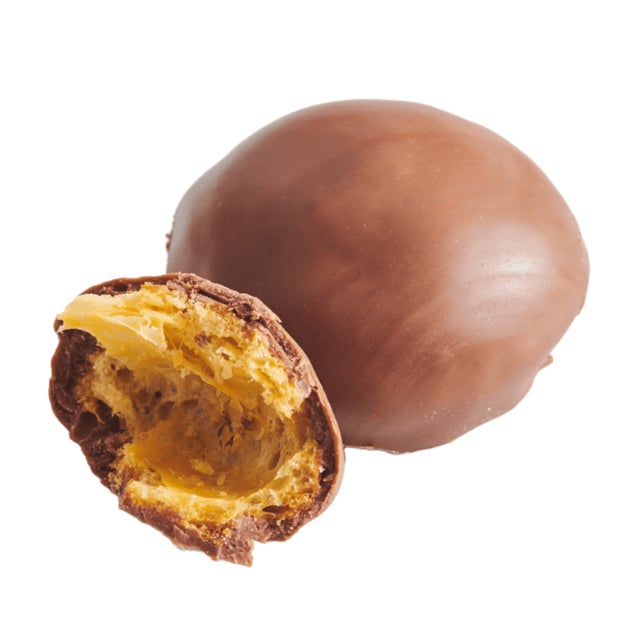 サクサクのシュー生地をホワイトチョコレートで包み、ホワイトシュガーをまとわせました。