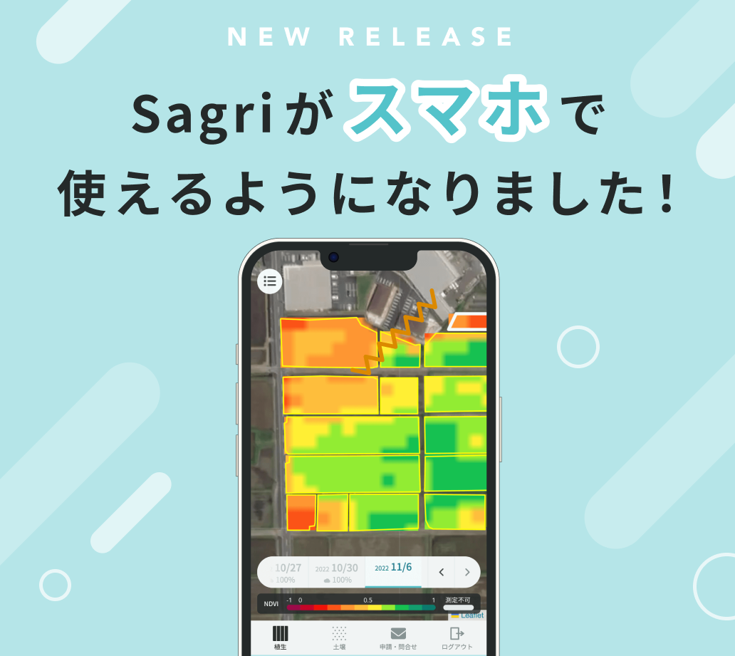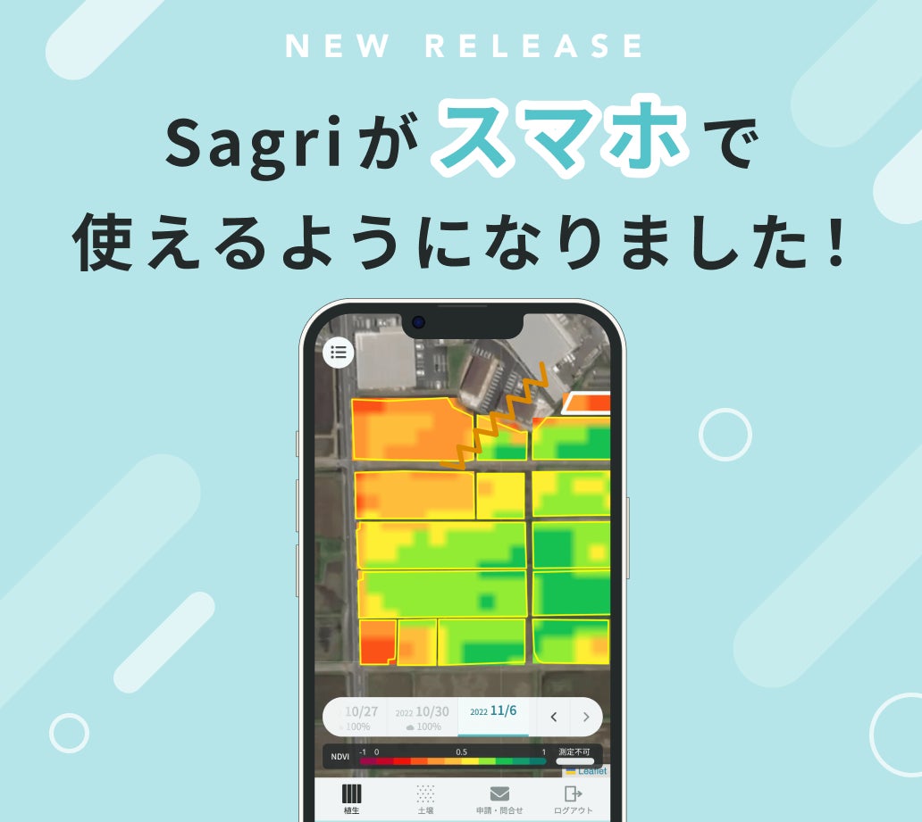 サグリ株式会社(本社:兵庫県丹波市、代表取締役:坪井 俊輔)は、衛星データ(Satellite)×機械学習(AI)×区画技術(GRID)を掛け合わせ、農業や環境における課題解決を目指す岐阜大学発ベンチャー企業です。この度、圃場の状態を可視化し農業生産者が圃場管理を効率化するアプリ“Sagri”のスマホWebアプリの提供を開始したことを発表いたします。