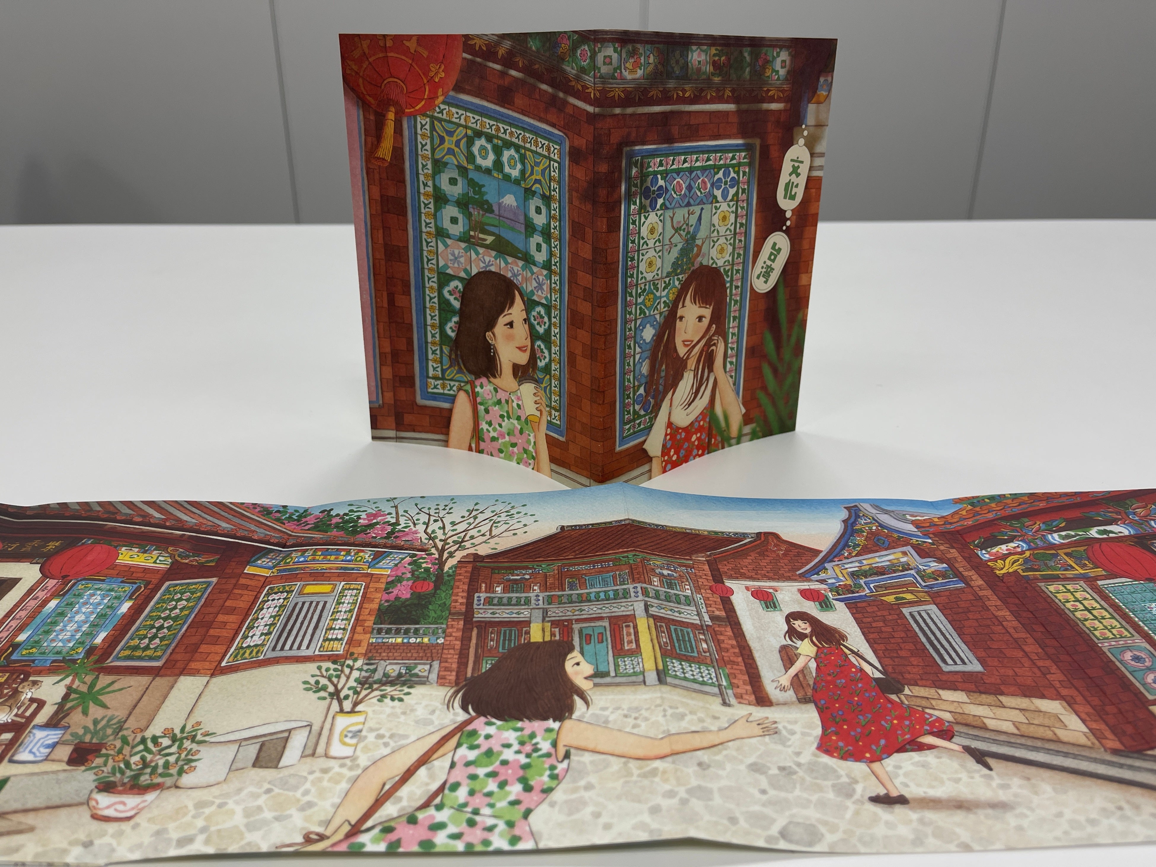 今年は、台湾のイラストレーターMiss Charlie 查理小姐氏 ( https://www.facebook.com/c.charlie )による温かいタッチの美しいオリジナル書下ろしのイラストで、台湾のマジョリカタイルとノスタルジックな建物をメインテーマに制作しました。そのほか、台湾人形劇、台湾茶、台湾キッチン、猫など多く可愛らしいイラストを盛り込んでいます。今年のパンフレットも、台湾イラストレーターが一つの作品としてじっくり長い時間をかけて書下ろし完成したものです。ぜひ楽しみながら、ゆっくりご鑑賞してください。