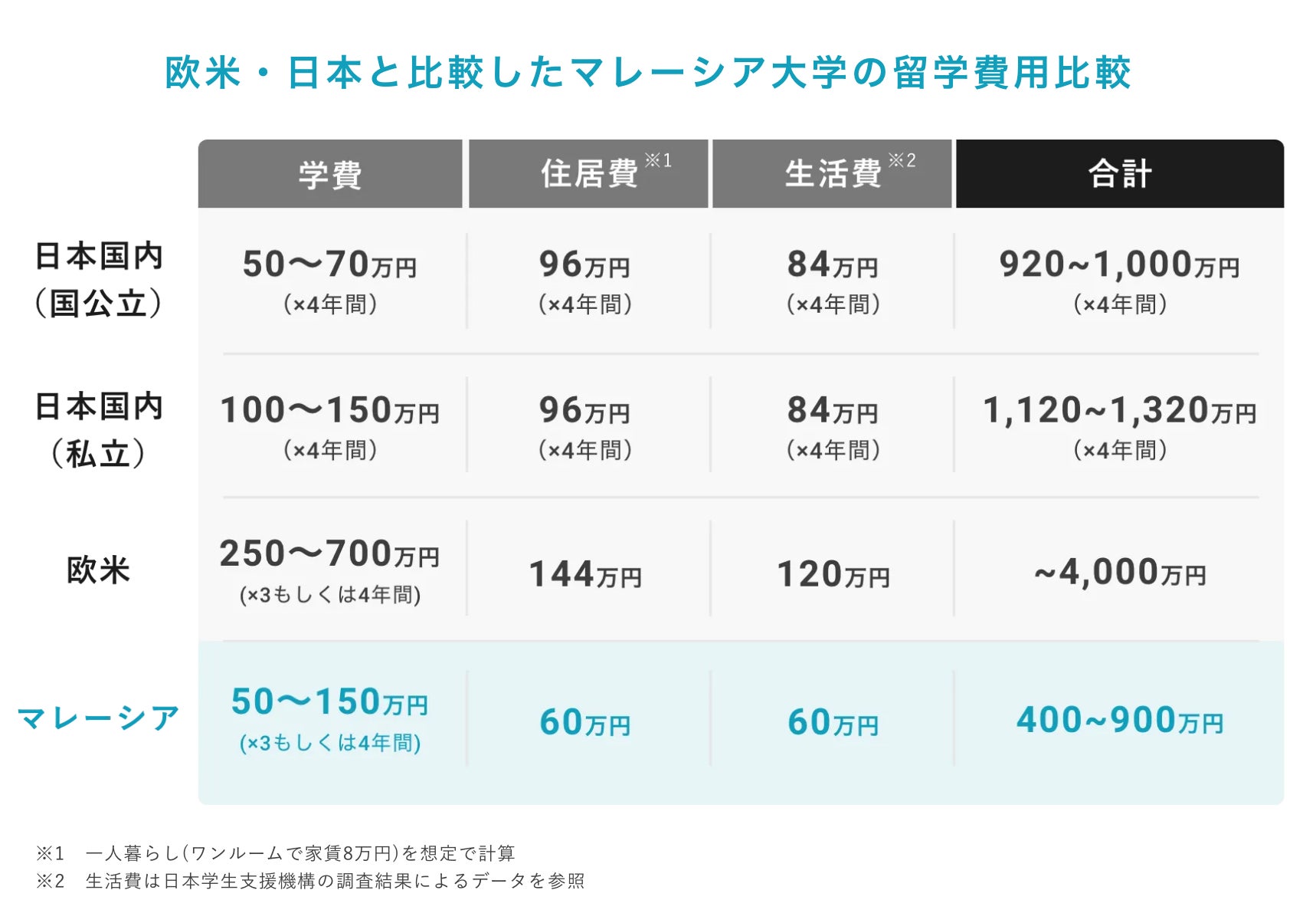2.欧米圏よりも学費を”半額以下”に抑えられる