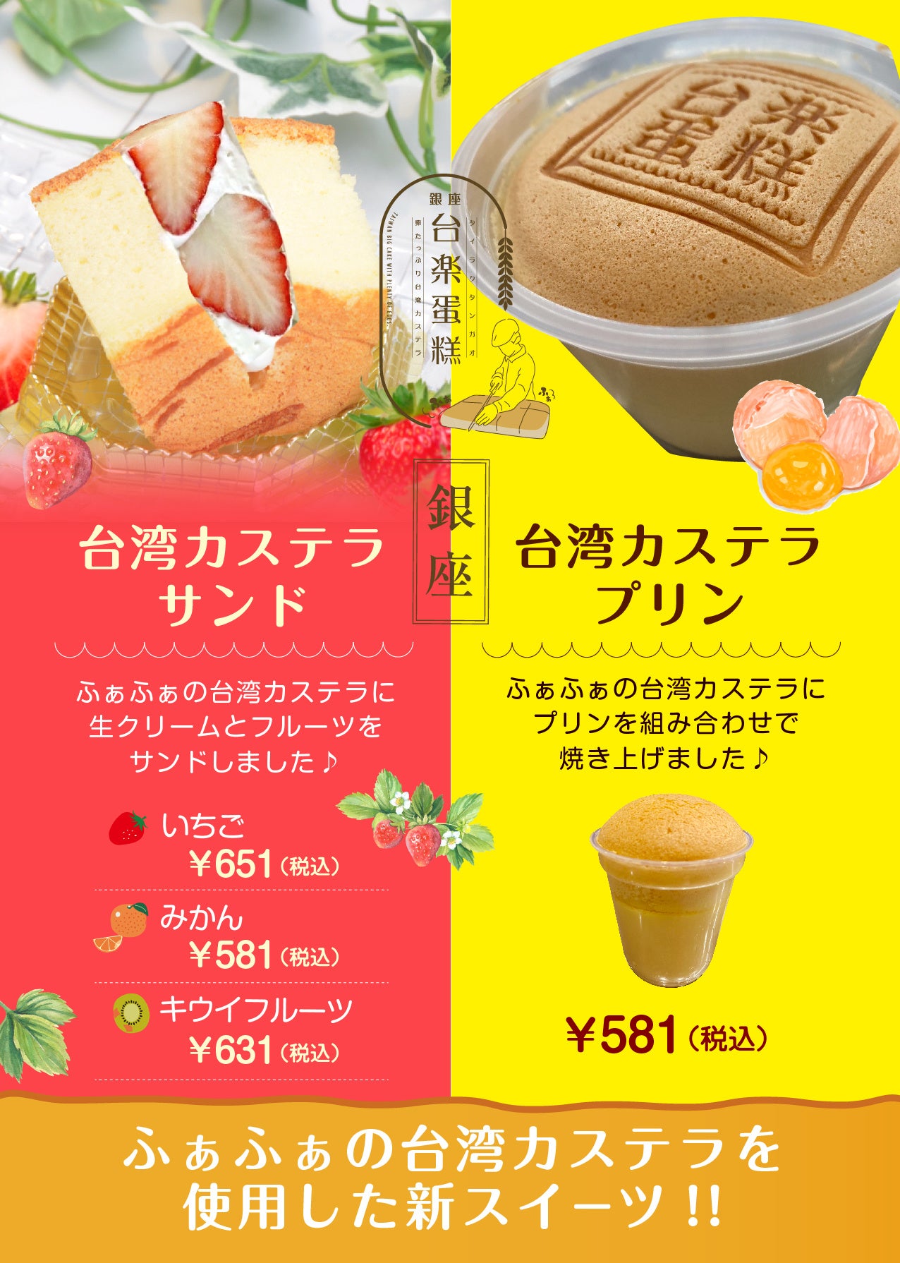 ふぁふぁの台湾カステラにプリンを組み合わせた新感覚の台湾カステラスィーツ