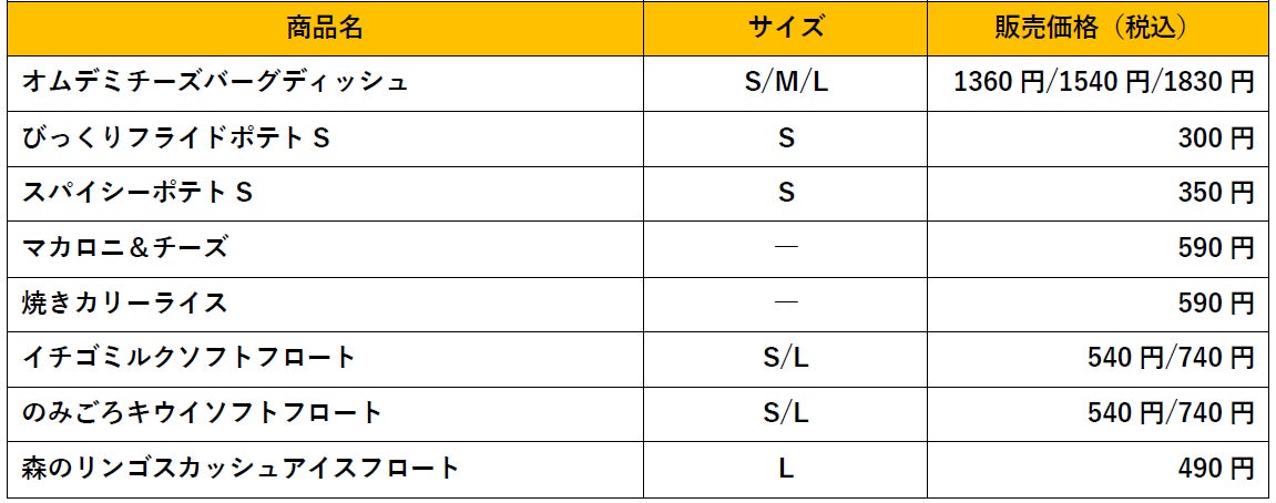 グランドメニューでは、過去の人気&話題のメニューだった「オムデミチーズバーグディッシュ」をはじめ、「マカロニ&チーズ」や「焼きカリーライス」など8品が定番商品に新たに加わります。