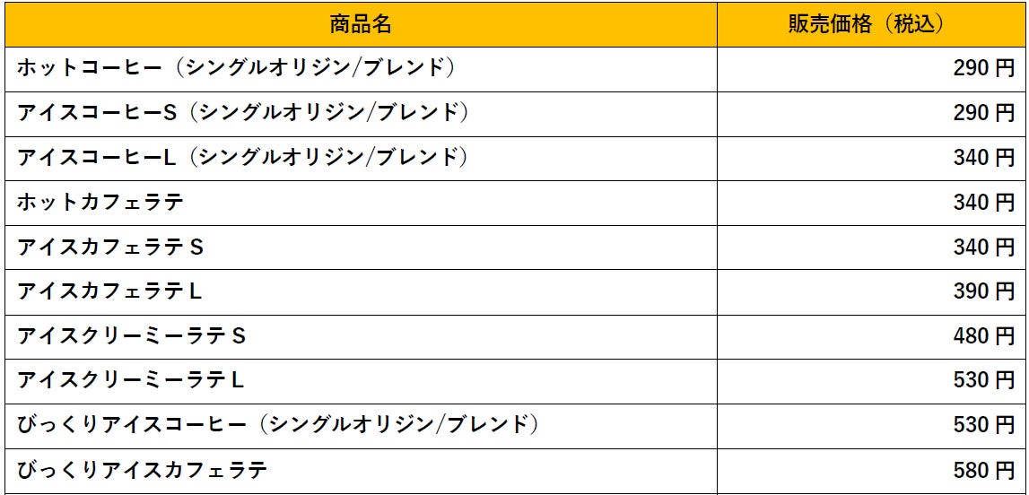 ※ホットコーヒー(シングルオリジン/ブレンド)、アイスコーヒーS(シングルオリジン/ブレンド)、ホットカフェラテ、アイスカフェラテSはランチドリンクでも選択可能です。