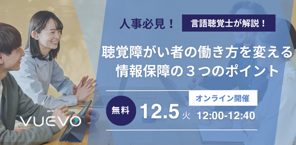 【12/5(火)12時】無料オンラインセミナー「言語聴覚士が解説!聴覚障がい者の働き方を変える情報保障の3つのポイント」を開催