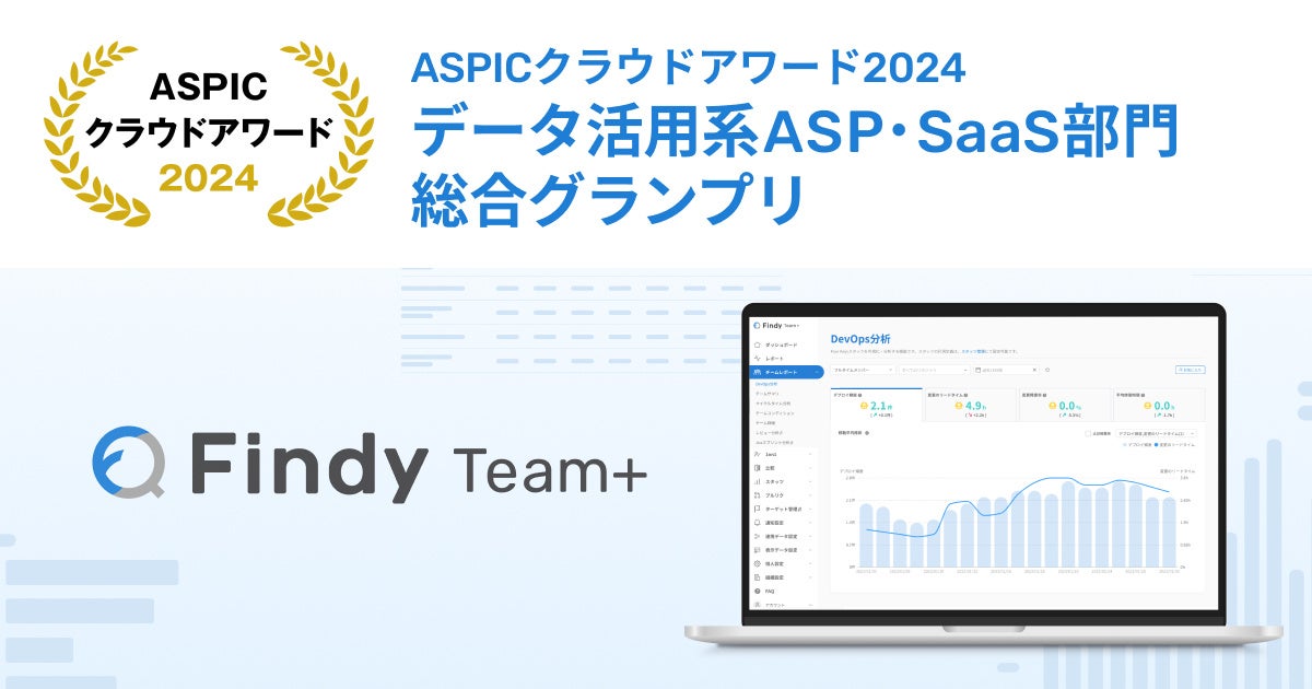 エンジニアプラットフォームを提供するファインディ株式会社(東京都品川区、代表取締役:山田 裕一朗、以下「当社」)は、「第18回ASPICクラウドアワード2024」にて、エンジニア組織の開発生産性可視化・向上SaaS「Findy Team+」が「データ活用系ASP・SaaS部門」の総合グランプリを受賞したことを発表します。