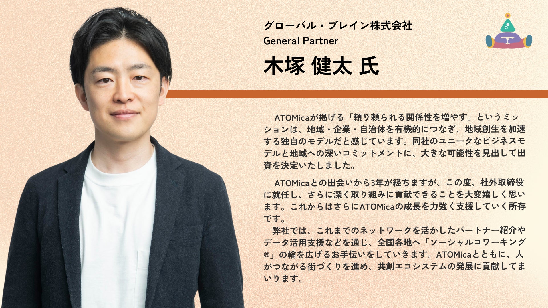 また2025年5月30日付で、グローバル・ブレイン株式会社より木塚健太氏が社外取締役に就任したことをお知らせいたします。