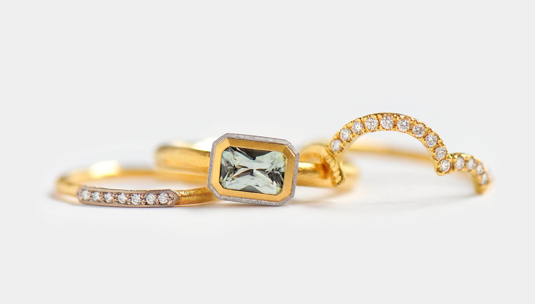 LA発のファインジュエリーブランド<スピネリ キルコリン>は、ミニマルな幾何学的フォルムをベースに質感やバランスを大胆にミックスしたデザインで注目を集めています。期間中は、定番人気を誇るコネクテッドリングをピンキーからメンズまで幅広いサイズレンジで取り揃えるほか、サファイヤやダイヤモンドなどの貴石とメタルをふんだんに使用したラグジュアリー感溢れるバーニーズ ニューヨーク限定のリングも登場。さらに、通常お取扱いのないピアスやブレスレット、プレシャスなラインのジュエリーも特別にご用意いたします。