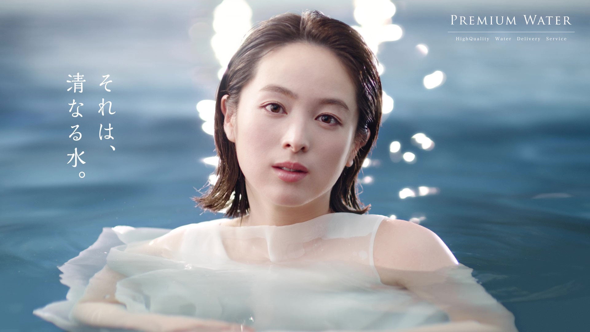 CMでは透明感あふれる清野菜名さんが真っ白なワンピースを着て登場し、お水の中へ。「それは、清なる水」というキャッチコピーとともに清野さん自身がお水の一部となり、プレミアムウォーターの天然水の美しさや清らかさをストレートに表現しています。