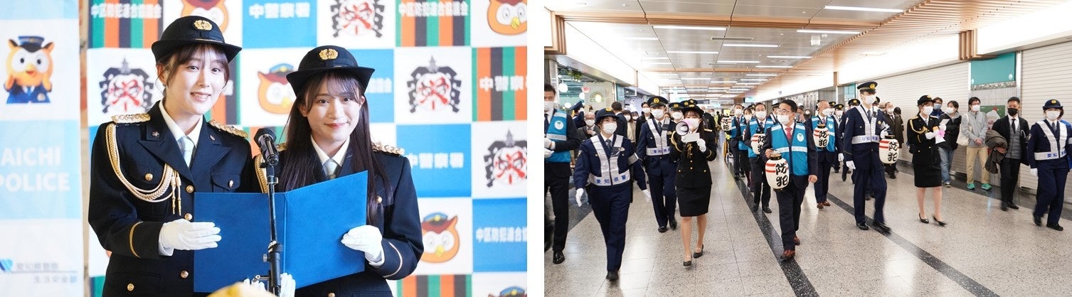 その後、SKE48の両支援官はHisaya-odori Park メディアヒロバで行われた「年末の安全なまちづくり県民運動出発式」に参加し、防犯宣言を述べながら、警察官や防犯ボランティアを激励しました。