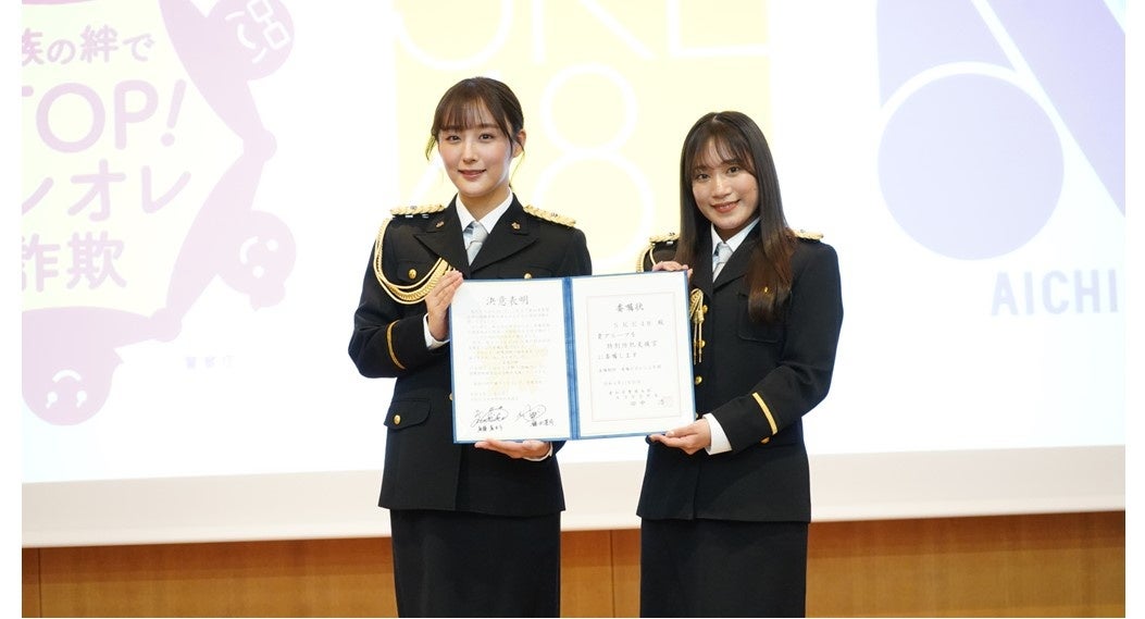 この度、特別防犯支援官のSKE48が、愛知県警察本部で特別防犯支援官の再委嘱を受けました。再委嘱式にはSKE48から斉藤真木子支援官、鎌田菜月支援官が出席し、委嘱状の受領と決意表明を行いました。