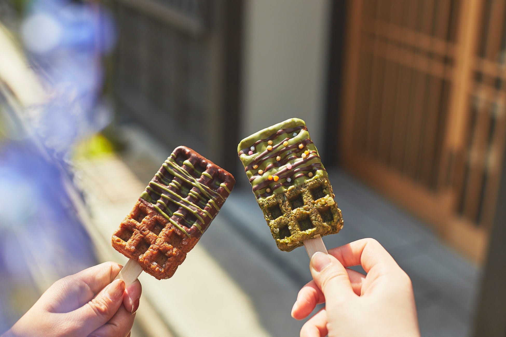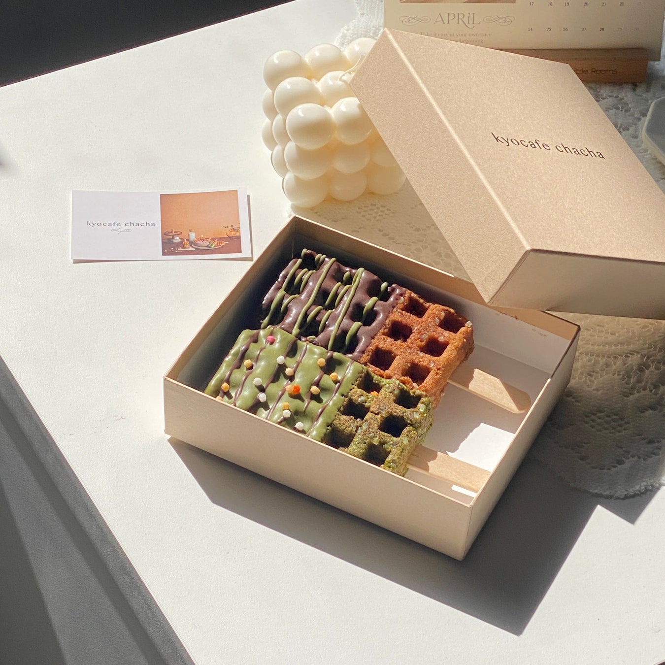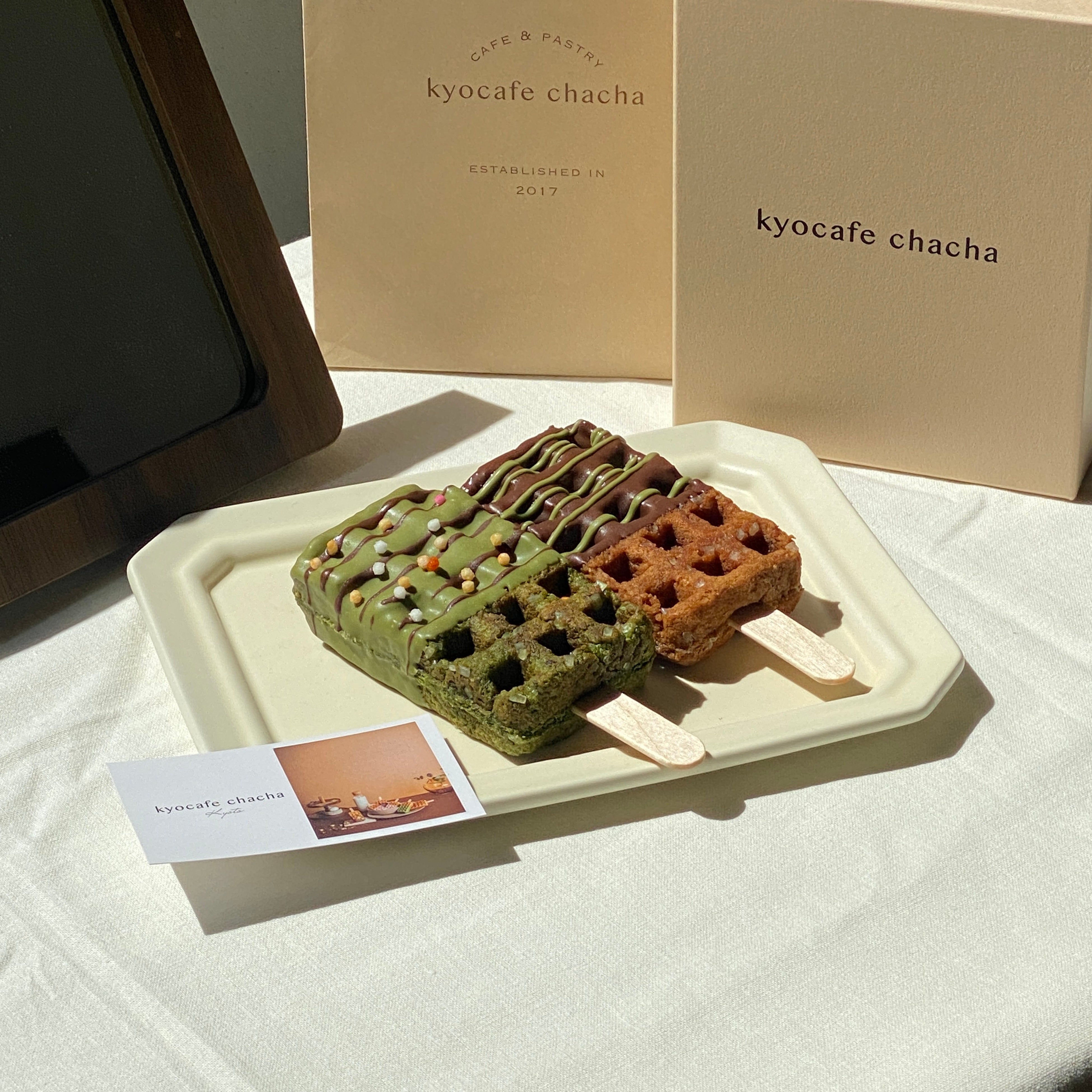 2017年4月より京都で運営しているワッフル専門店「kyocafe chacha」では、可愛くって食べやすいバータイプの新感覚ワンハンドスイーツ「京ワッフル」を販売しております。