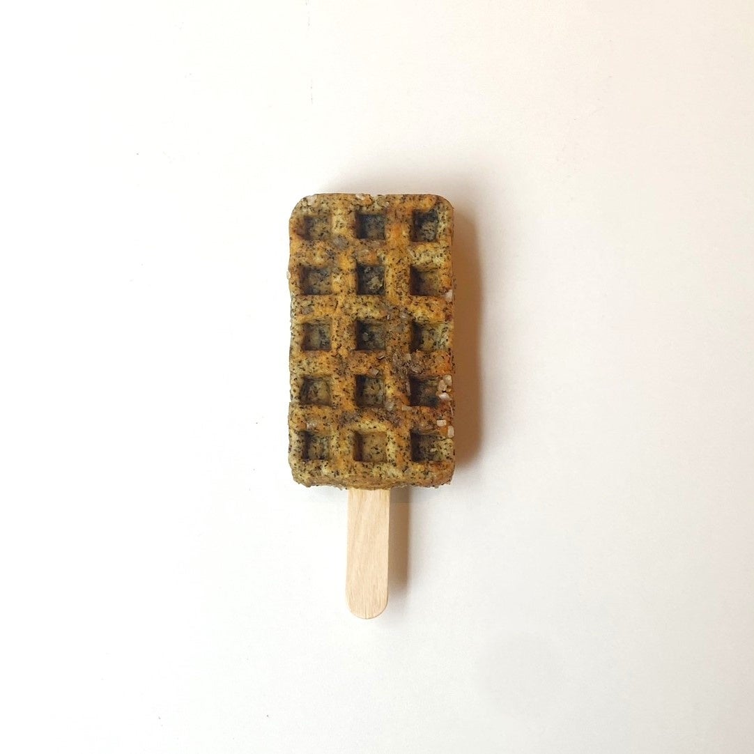 大粒ザラメが入った京ワッフルの生地に、アールグレイの茶葉をたっぷり練り込んでいます。