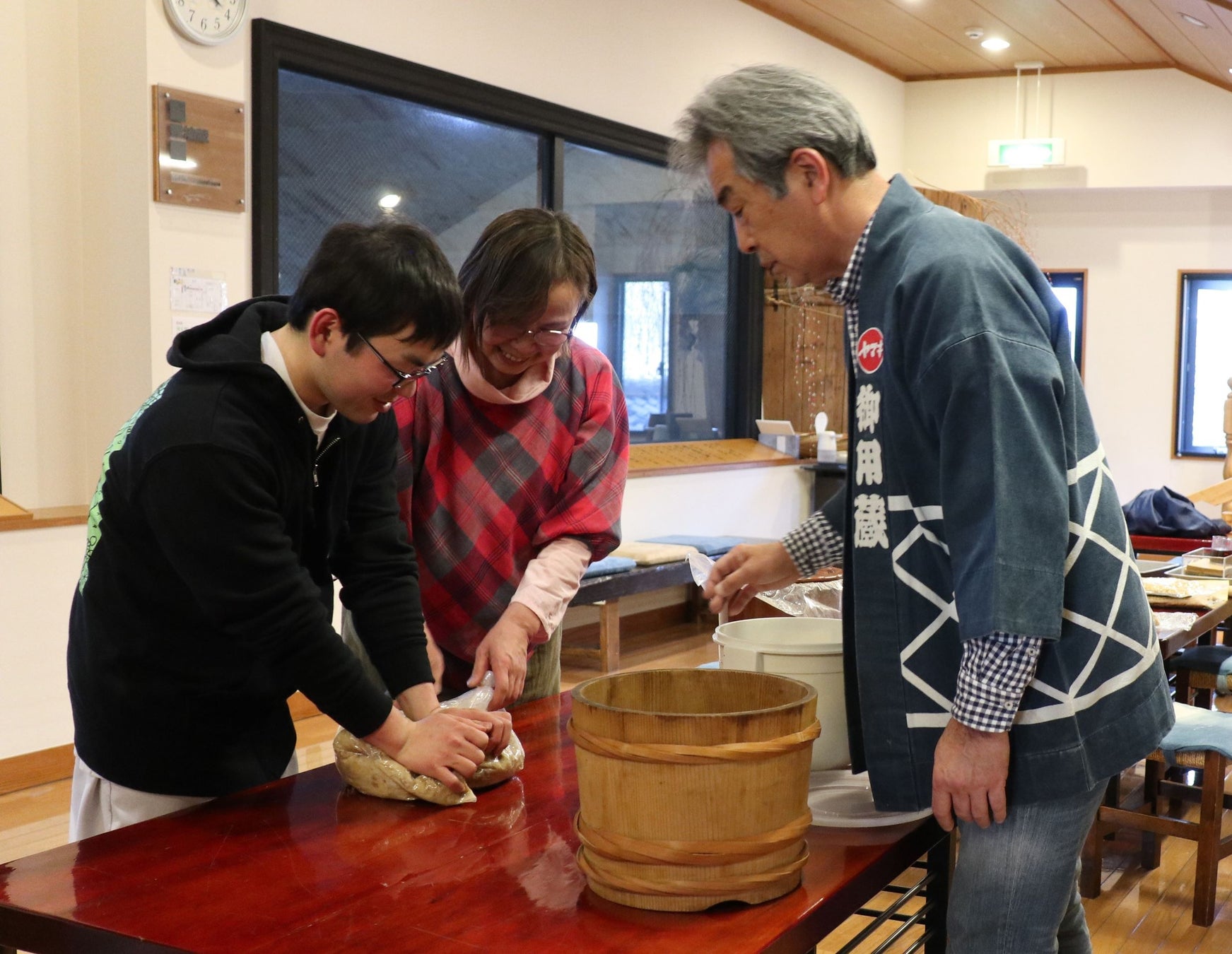 ①創業100年を超える老舗のヤマキ醸造での有機味噌造り体験♪