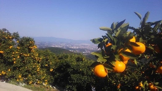 熊本市北西部の金峰山一帯に産地が広がっています。収穫は9月中旬からはじまり、11月をピークとして年末まで続きます。露地栽培では、園地にシートを貼ることで日光を反射させつつ水分量を調節するなど、色がよく甘いみかんを作るために様々な工夫がなされています。