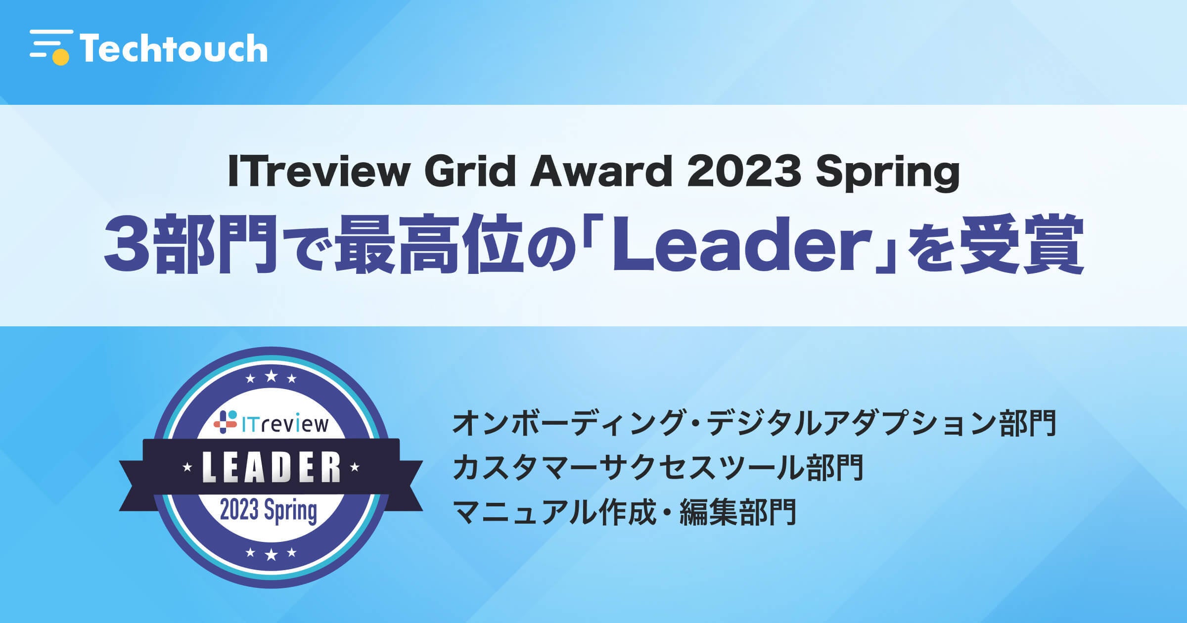 テックタッチ、「ITreview Grid Award 2023 Spring」3部門で最高位である「Leader」を受賞