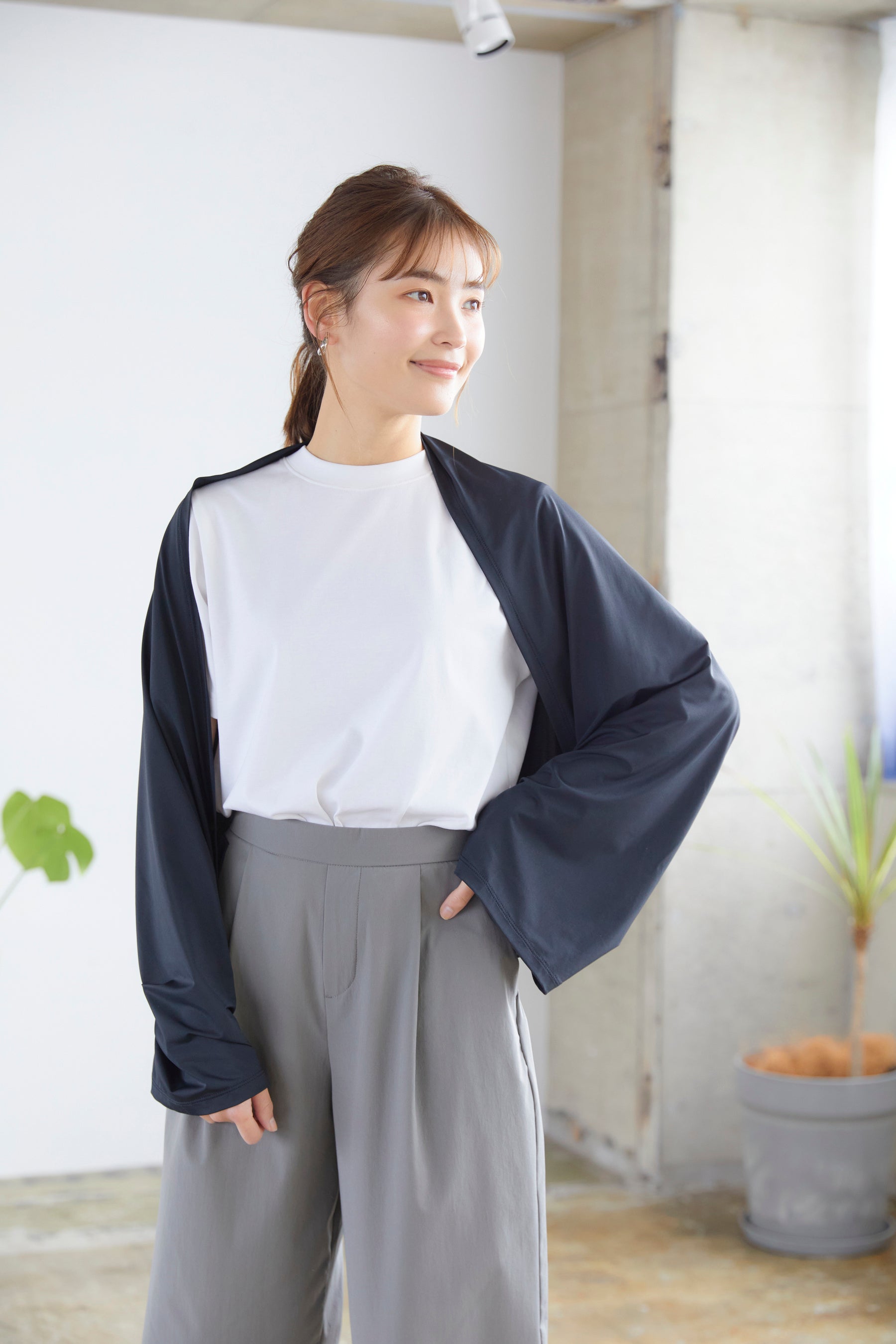 生地にストレッチが効いており、カラダの動きを邪魔しないストレスフリーな着心地のボレロです。