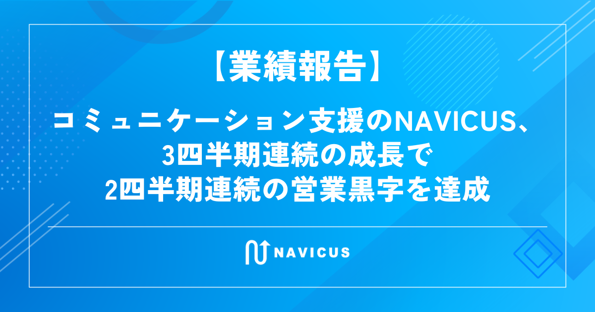 【業績報告】コミュニケーション支援のNAVICUS、3四半期連続の成長で2四半期連続の営業黒字を達成