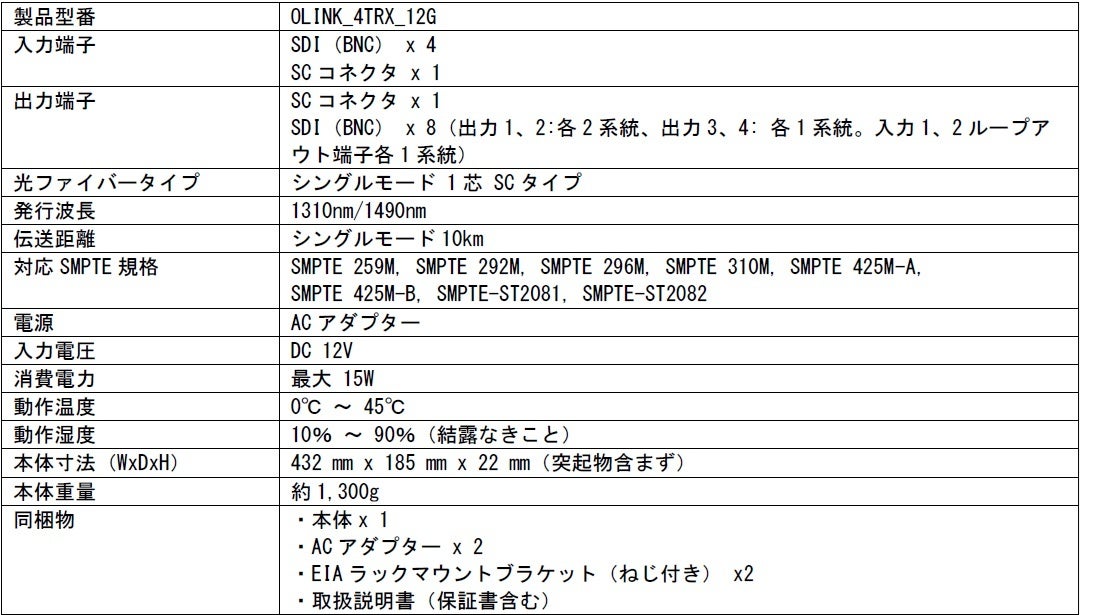- 12G-SDI信号 4系統を2本の光ファイバーケーブルで長距離かつ双方向に同時伝送可能 -