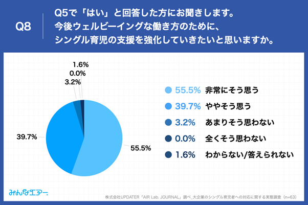 - 9割超の企業が、ウェルビーイングな働き方のため、シングル育児への支援の強化を検討