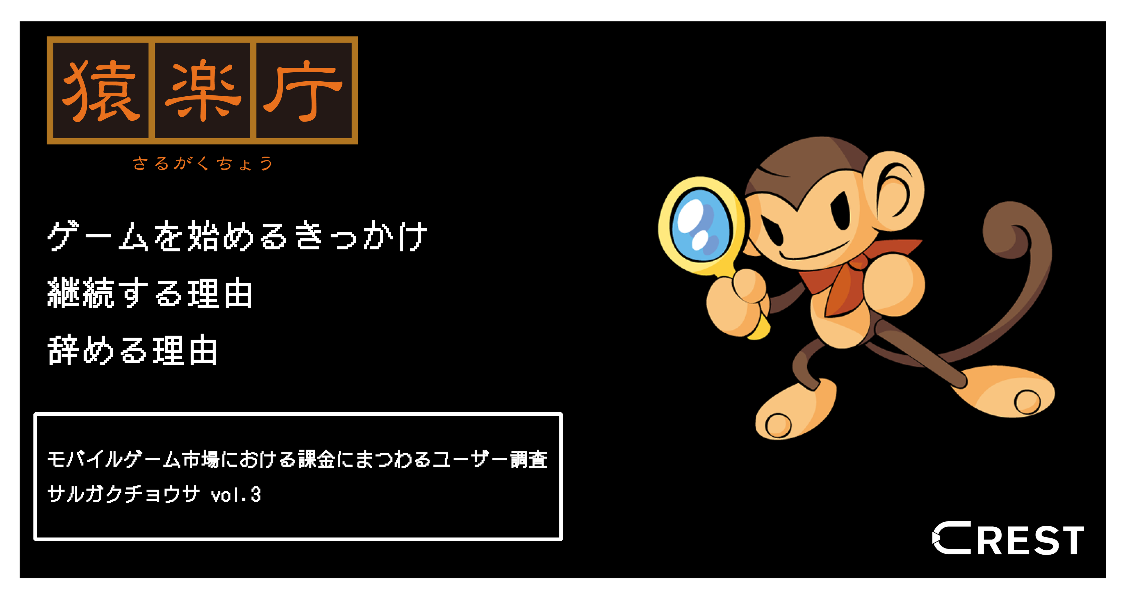 株式会社CREST(本社:東京都新宿区、代表取締役:三上政高/梁 俊模、以下「CREST」)のチューニング・検証事業を担う猿楽庁(長官:小島尚也)は、2020年に引き続き、2021年のモバイルゲーム市場を独自の視点で振り返るべく、課金にまつわるユーザー調査(以下「本調査」)を2022年1月に実施しました。