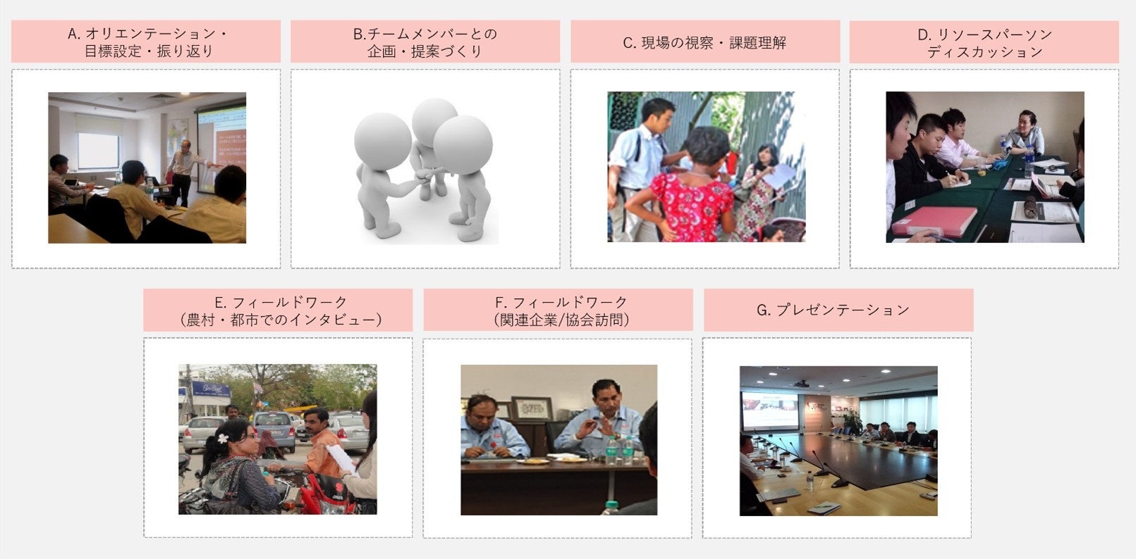 本プログラムでは、実際に現地の組織(NPO等)から提示される社会課題の解決策をSDGsコンサルタントのアドバイスを受けながら、ビジネス視点で検討、提案までをおこなうことで、参加者の「社会課題解決のためのビジネス視点」を醸成します。また、ナショナルスタッフ役の現地メンバーと協働で課題解決に取り組み、現場でリードしていく経験を積みます。