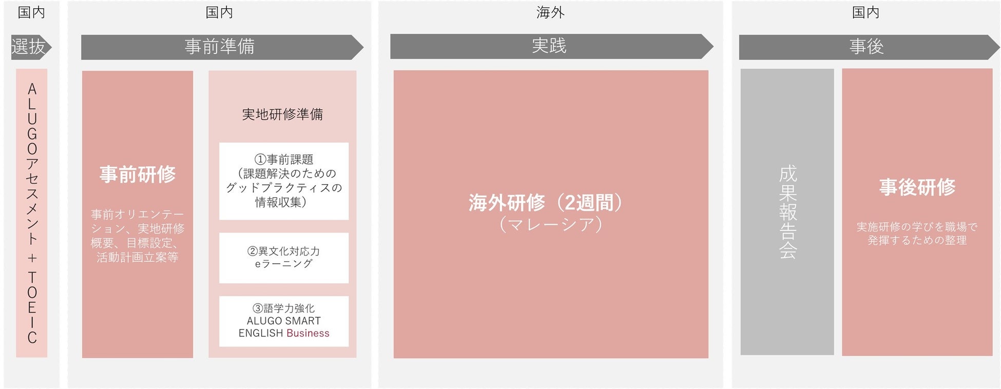 アルーの海外派遣研修は、受講者のレベルや目的に応じて異なるプログラム構成となっており、今回提供を開始するプログラムは、グローバルプレイングマネジャー向けの「社会課題解決プログラム」です。