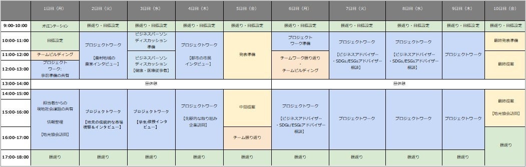 ・研修期間は2~3週間(以下例は2週間プログラムの場合)