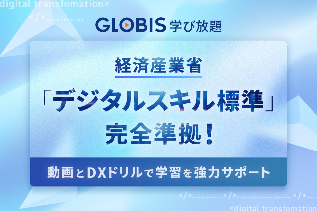 株式会社グロービス(東京都千代田区、代表取締役:堀義人)が提供する定額制動画学習サービス「GLOBIS 学び放題」は、経済産業省が定める「デジタルスキル標準*1(以下、DSS)」に準拠した動画コンテンツの拡充し、同指針が定めるすべてのカテゴリーへの対応が本日9月14日に完了したことをお知らせします。