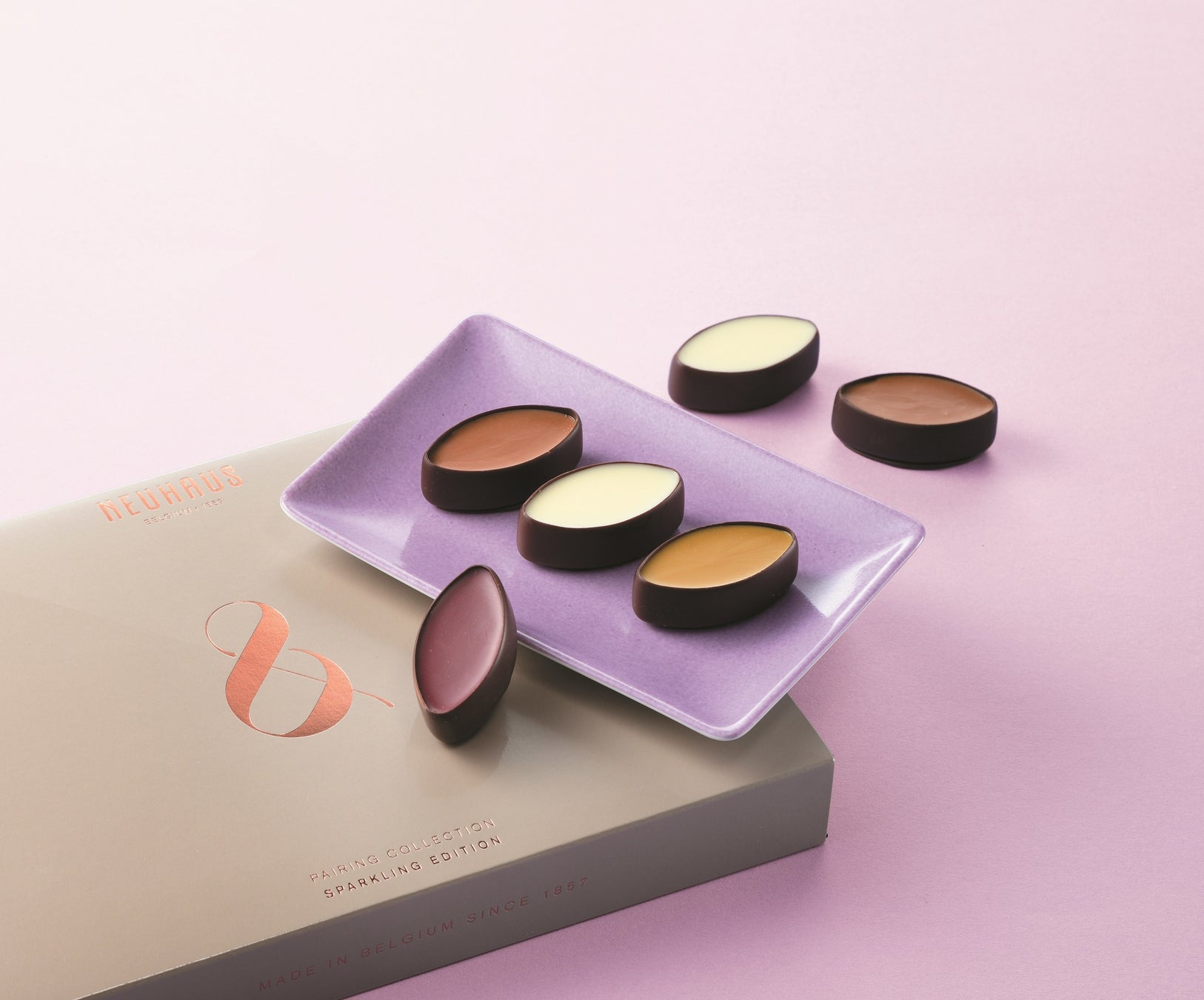 ベルギーに本店をかまえ160余年の、チョコレートの老舗ノイハウス。シャンパンやスパークリングワインとの相性にこだわったチョコレートが登場。レモンの風味が爽やかなプラリネやチリを使ったガナッシュなど個性豊かな4種類のチョコレートが味わえます。