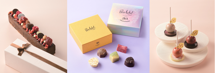 ベルギーの伝統を基に独創的なショコラを手掛けるピエール・ルドン。日本で販売を開始して20周年を迎える今年は、定番のビター、ミルク、ホワイトに近年人気のルビー、ブロンドの5種を1箱で楽しめるセットが20周年記念限定ボックスに入って登場します。