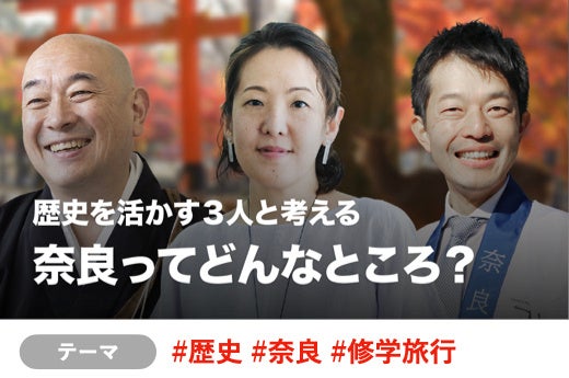 1300年の歴史を刻む古都・奈良。大仏や寺社、伝統行事に息づくその文化を、いまの暮らしへとつなぎ、新しい世代へ受け渡そうとする3人に出会います。
