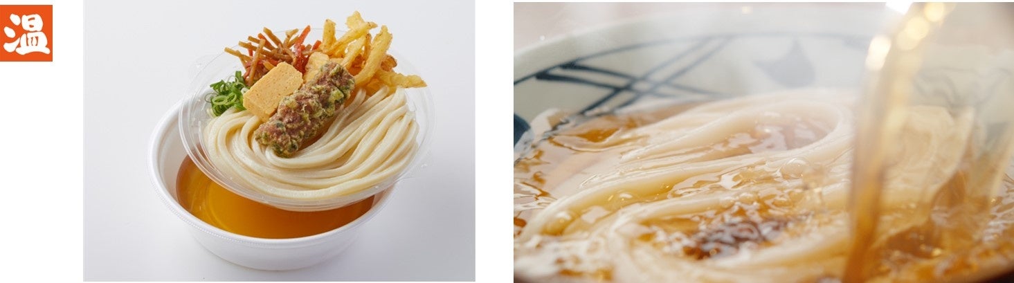 これからぐっと肌寒くなる季節に、その日の天候や気分に合わせて、「丸亀うどん弁当」を召し上がっていただきたいという想いを込めて、温かいかけうどん、または、冷たいぶっかけうどんからお選びいただけます。それぞれのだしに天ぷらとおかずが絶妙に混ざり合って生まれる調和をお楽しみください。店内製麺だからこそ、“温”と“冷”で変わる麺の食感の違いも、お楽しみいただけます。