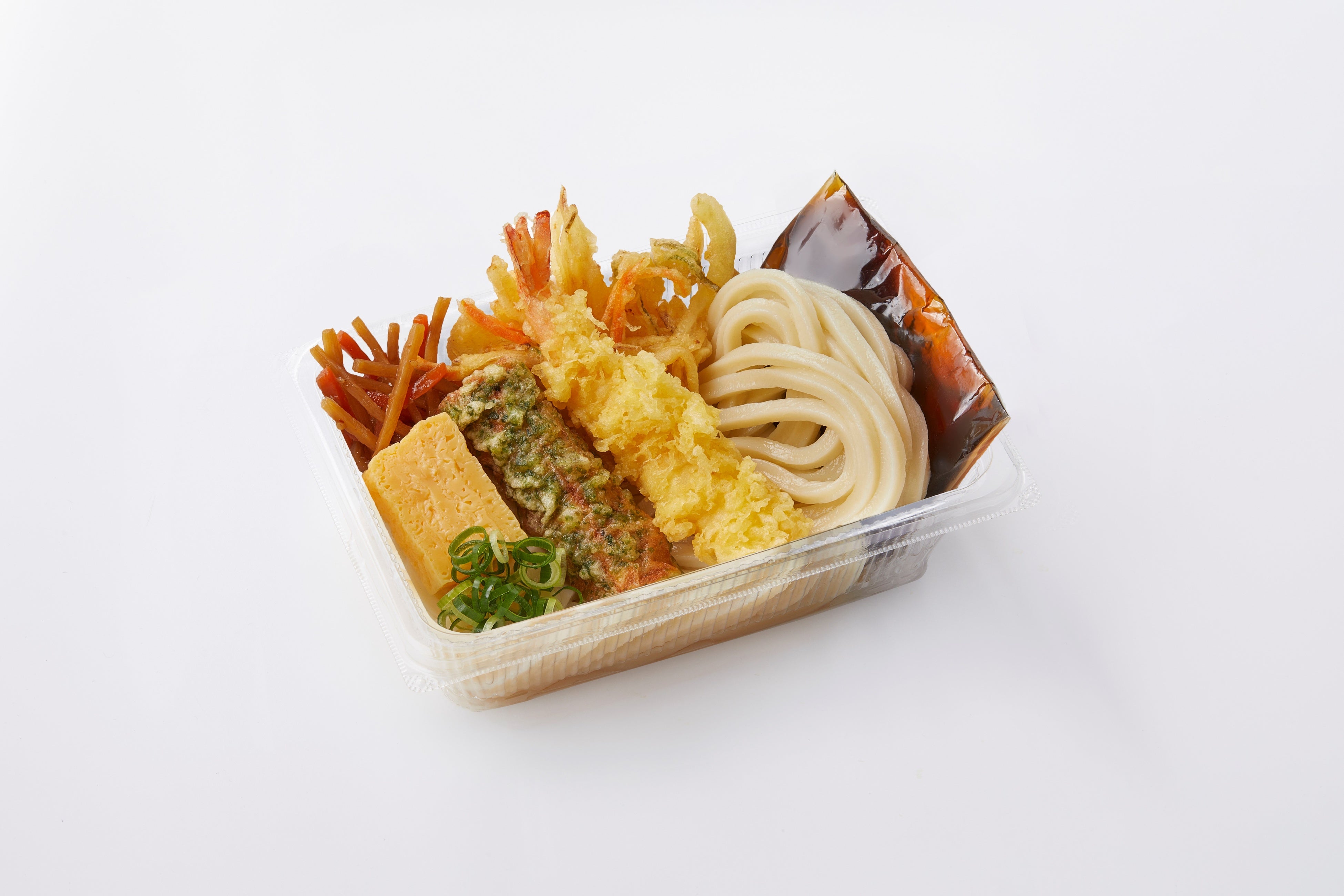 打ち立てのうどんを、どこでも、おいしくお召し上がりいただき、少しでも食事の時間に笑顔を増やせたらという想いを込めて、「丸亀うどん弁当」は、どの商品も、打ち立て・茹でたてのうどんと、サクサクの天ぷら、おかずがぎゅっと詰まっています。