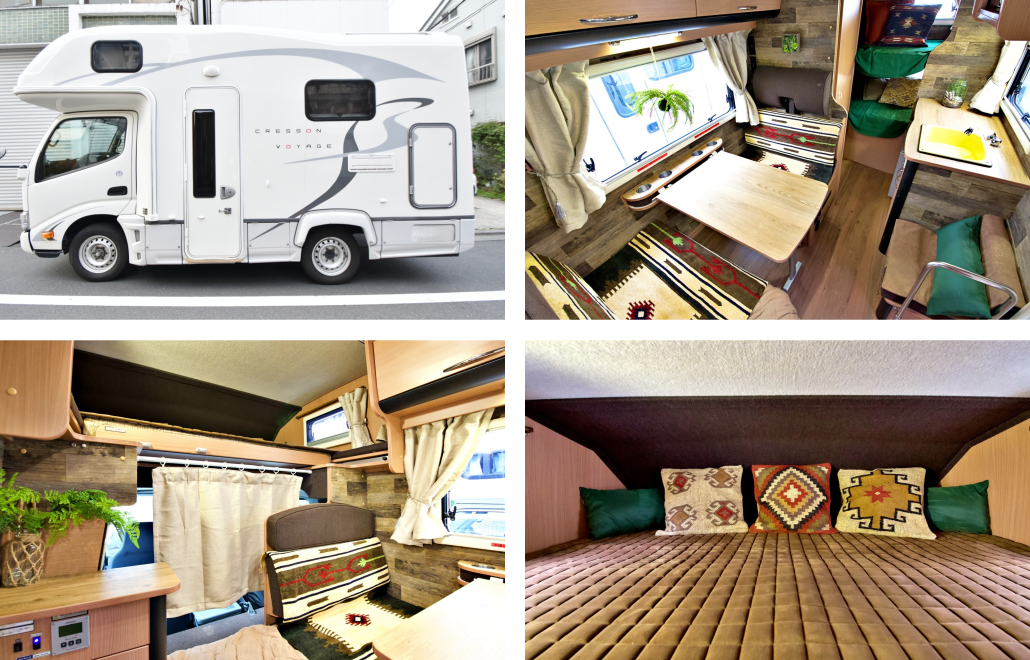 キャンピングカーの内装をプロのコーディネーターによって可愛く・かっこよくリフォームしていますので、まるで家にいるかのような特別な空間でのドライブが楽しめます。