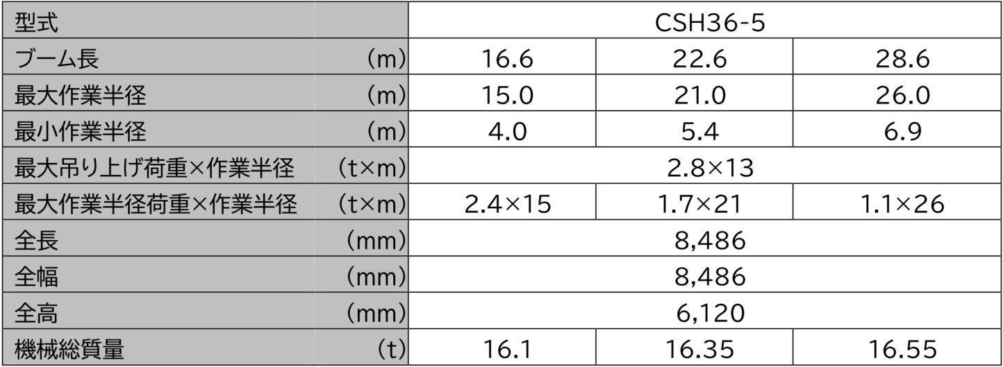 「ジブクレーン」は、深礎基礎工事・資機材運搬等で長期間必要不可欠なクレーンとなります。従来機は仮設発電機を必要としていましたが、本機械はディーゼルエンジン搭載のため、仮設発電機が不要となります。操作は操縦席から操作する方法と無線リモコンで遠隔操作する方法の2通りあります。