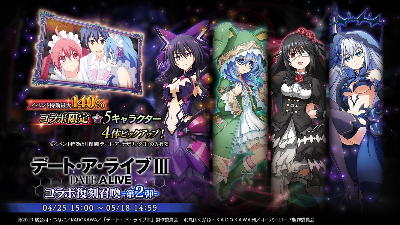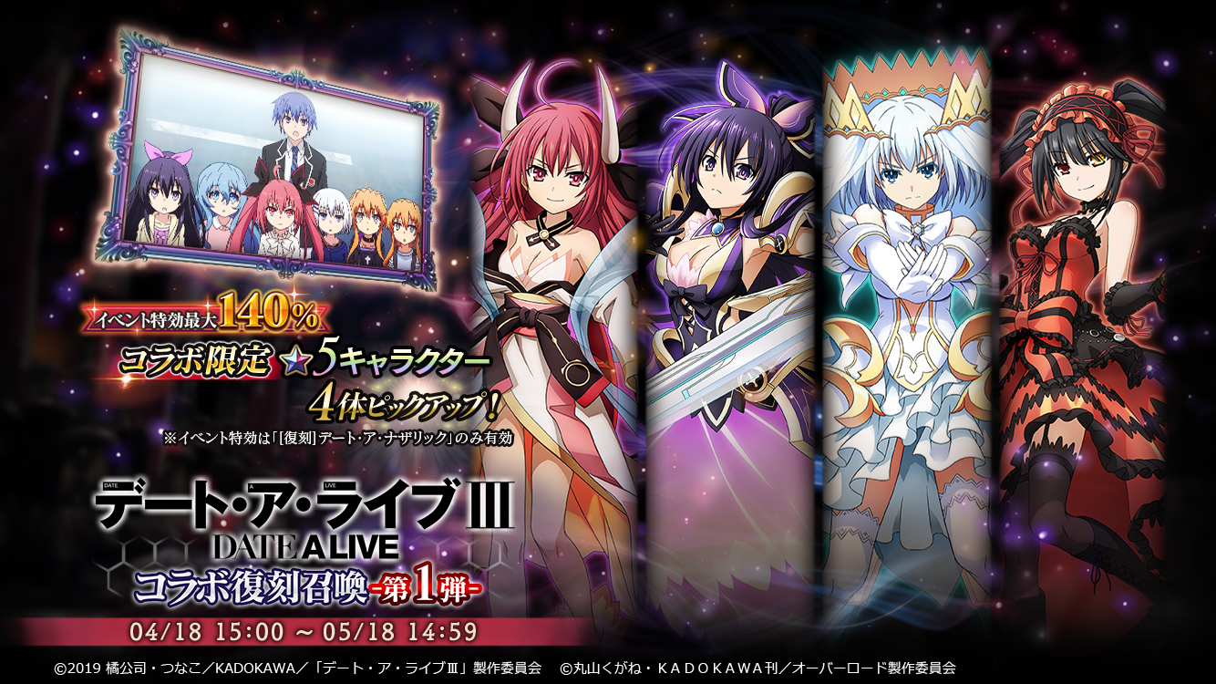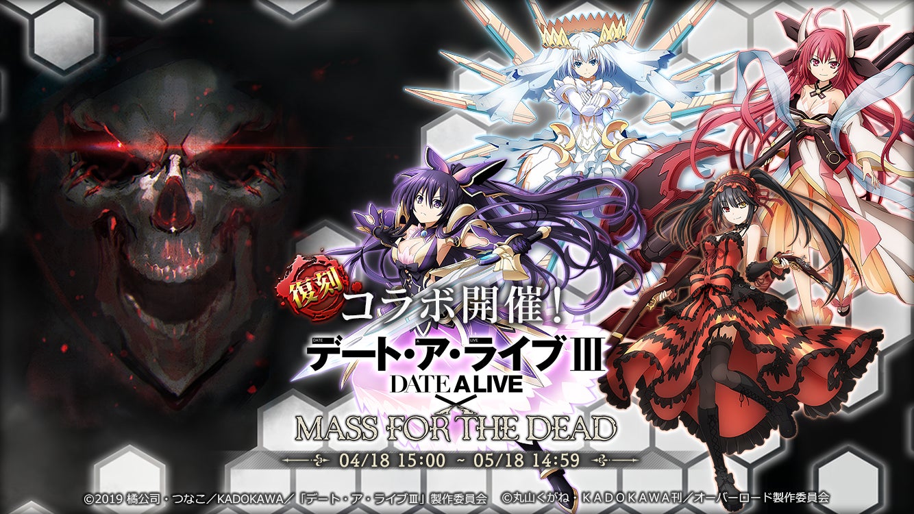 『オーバーロード』原作のスマホゲーム「MASS FOR THE DEAD」でTVアニメ『デート・ア・ライブⅢ』との復刻コラボ開催決定!あのキャラクター達が再び登場!