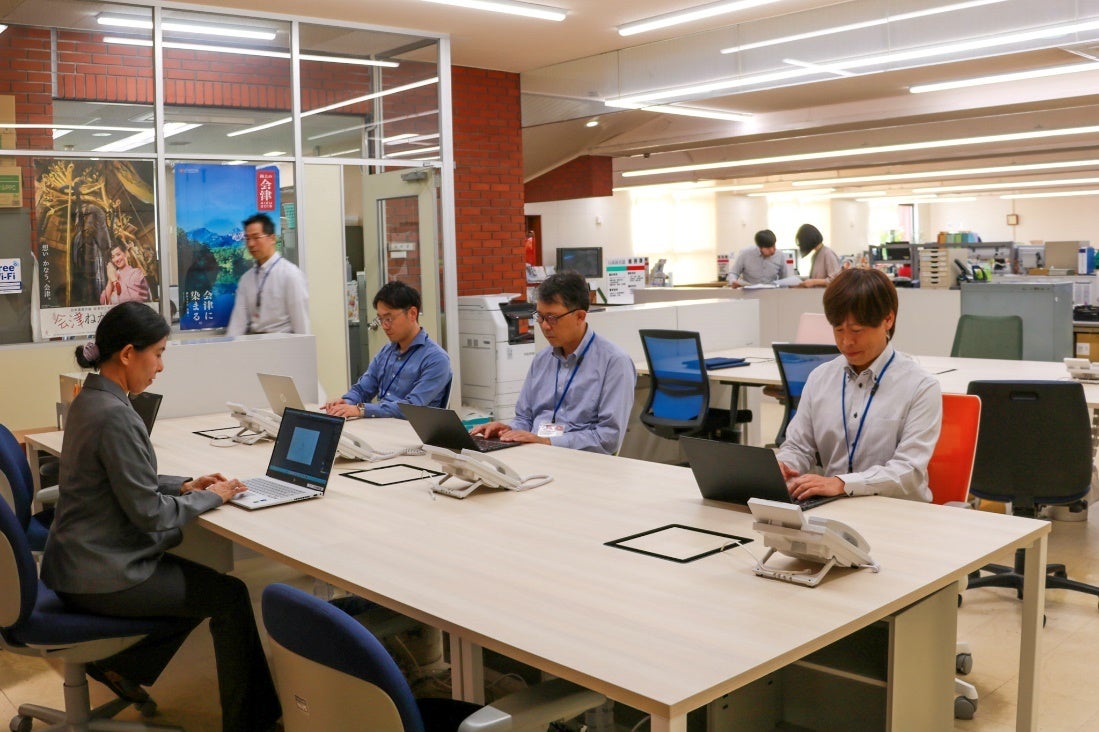 包括連携協定に基づき、実証事業としてオカムラからご提案いただいた新しい働き方のモデルオフィスになります。磐梯町役場の政策係と行政経営係の2係が、固定席を廃止し、職員が自由に座席を選べるフリーアドレス化に取り組むことで、コミュニケーションの機会を増大させると同時に働き方の柔軟性を高め、効率的な業務遂行を目指します。この実証事業は、令和7年3月31日までの期間を予定しており、その成果をもとにさらなる改善を図ってまいります。