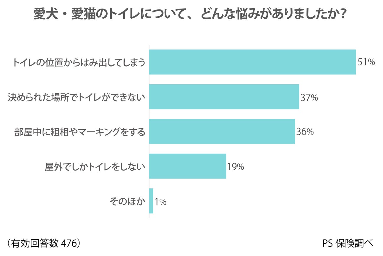 愛犬・愛猫のトイレのしつけで最も多い悩みは「トイレの位置からはみ出してしまう」(51%)。