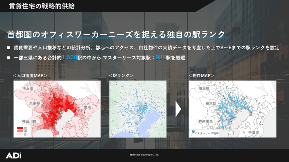 株式会社アーキテクト・ディベロッパー(本社:東京都中央区銀座、代表取締役社長:木本 啓紀、以下「ADI」)の執行役員 海渕 彬、執行役員 新井 勲が2025年8月20日(水)に東京ミッドタウン八重洲にて開催された「賃貸管理ビジネス研究会」(主催:船井総合研究所)に講師として登壇いたしました。本研究会は、全国の賃貸管理会社の経営者・経営幹部を対象にした会員制の勉強会であり、学びの場かつ師と友づくりの場として活用されています。業界の最前線で活躍する企業が、経営課題の解決や事業拡大に向けた実践的な取り組みを共有しています。ADIは、これまでに積み重ねてきた事業の取り組みや成果を紹介し、参加者と共に業界の新たな可能性を考える機会となりました。