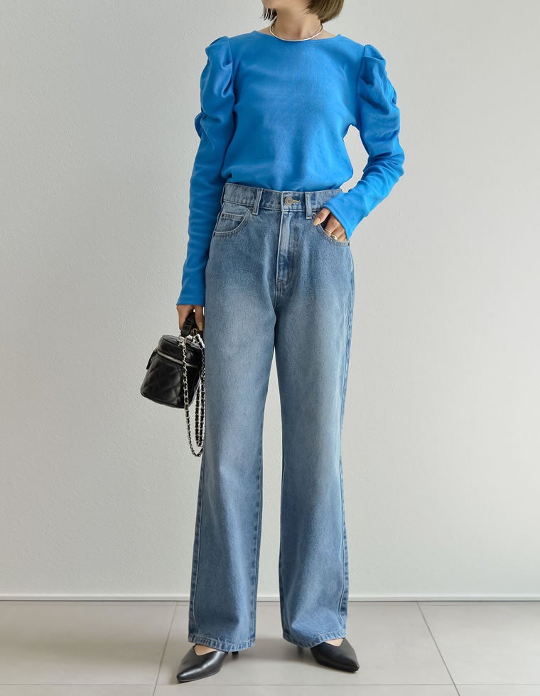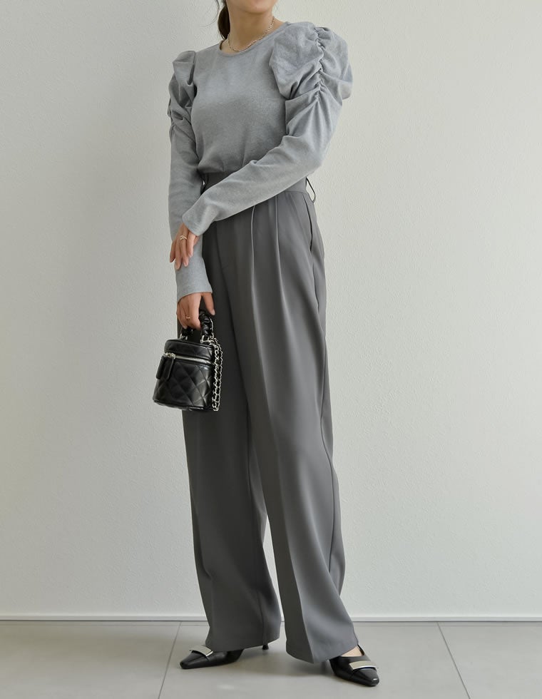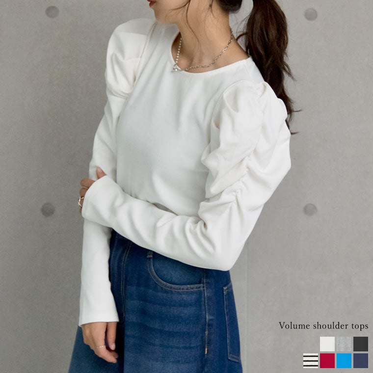 ショルダー部分のボリュームスリーブデザインが立体的なシルエットを描き、1枚で華やかな印象に。