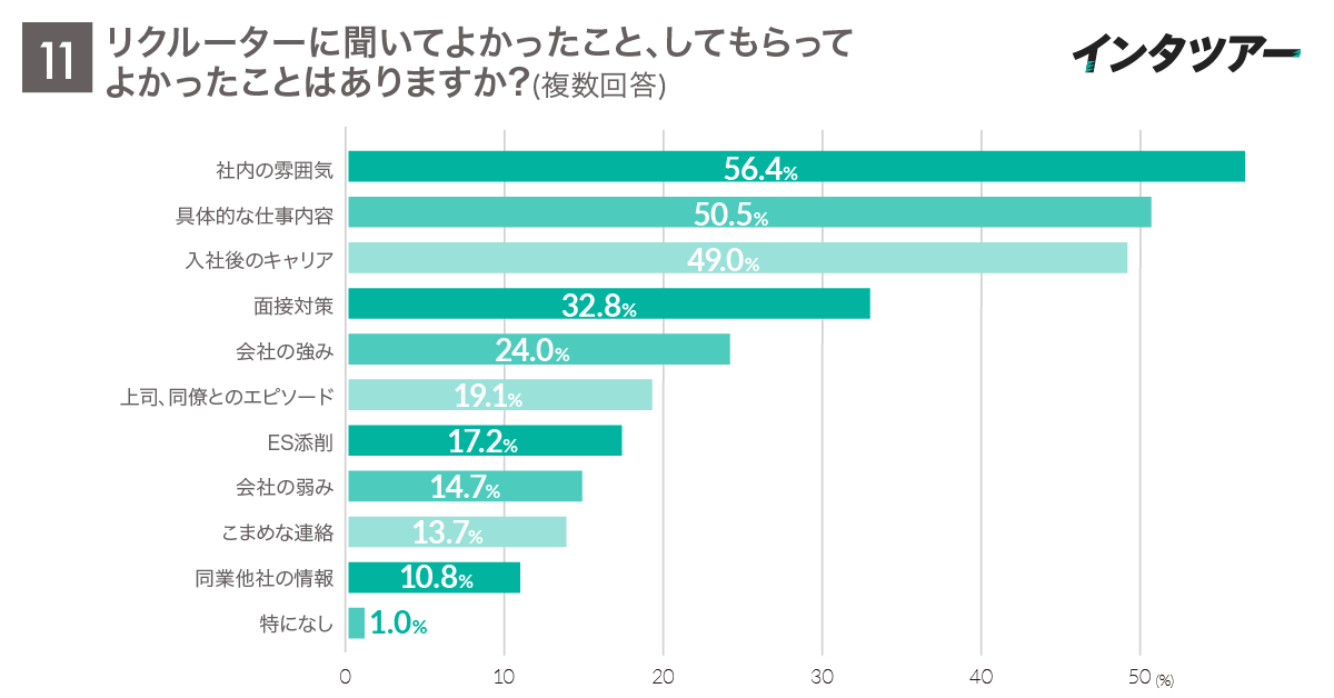 設問11.リクルーターに聞いてよかったこと、してもらってよかったことはありますか。(複数回答)