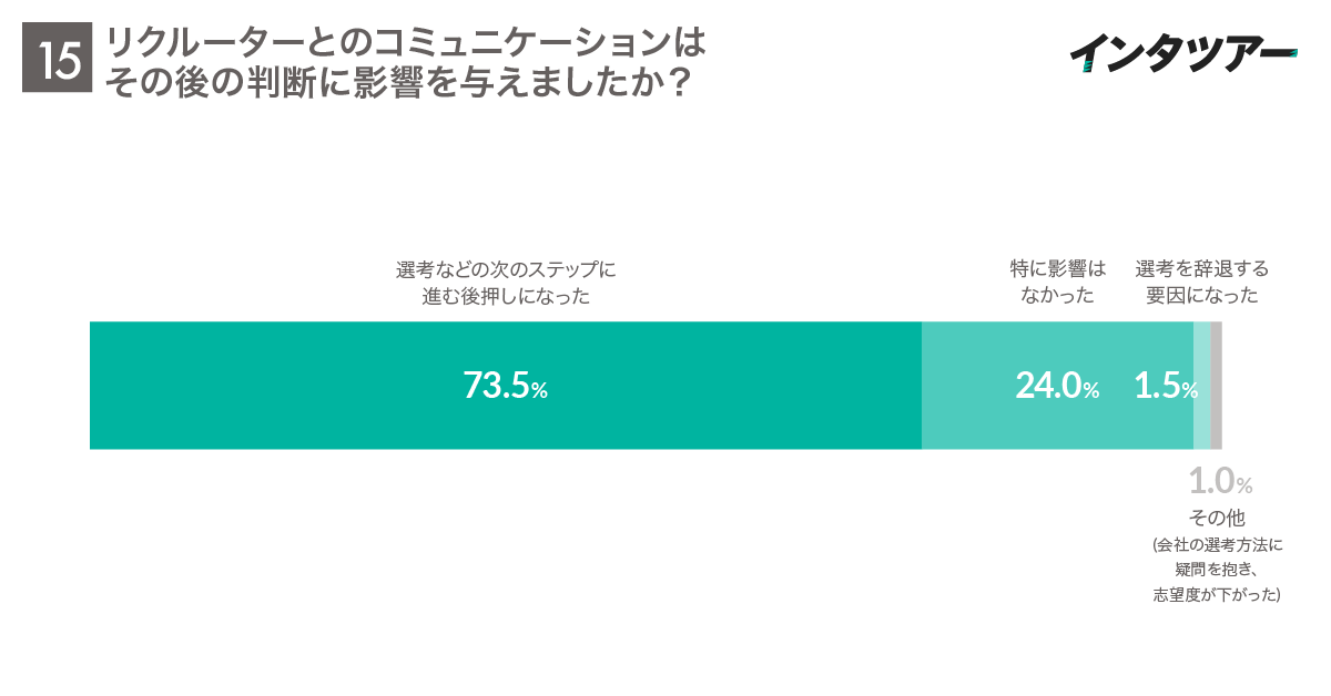 設問15では、リクルーターとのコミュニケーションがその後に及ぼした影響について聞きました。