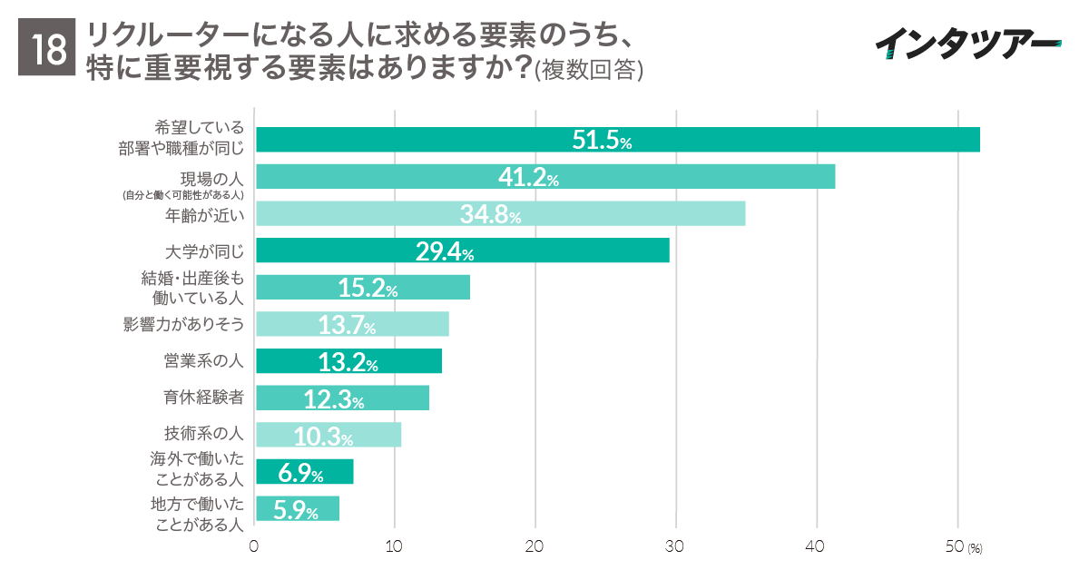 設問18.リクルーターになる人に求める要素のうち、特に重要視する要素はありますか?