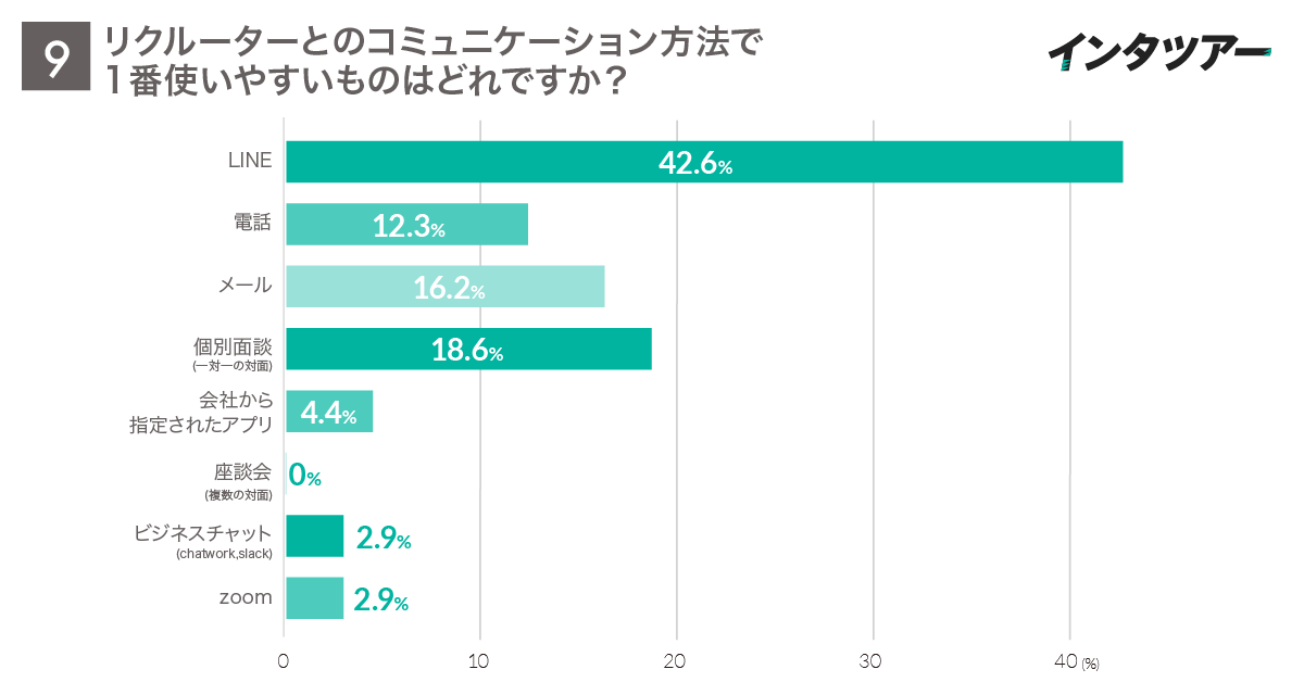 リクルーターとのコミュニケーション方法は「LINE」が最も好まれる