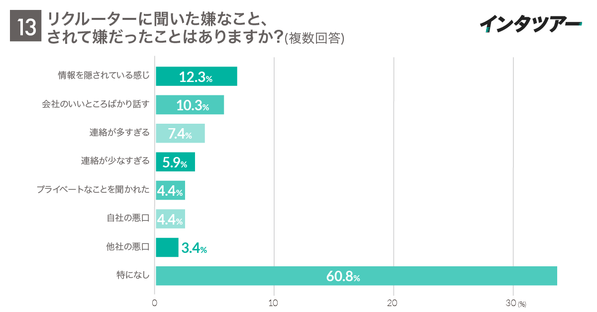 設問13.リクルーターに聞いた嫌なこと、されて嫌だったことはありますか。(複数回答)